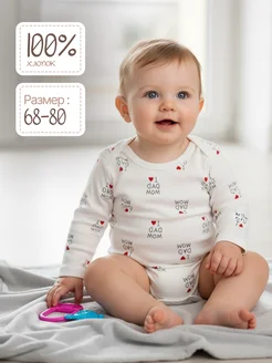 Боди для малышей с длинным рукавом на кнопках 68-80