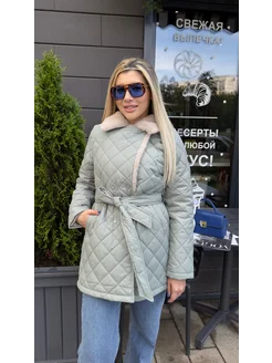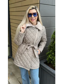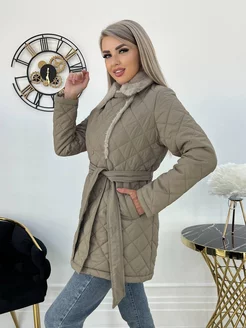 Куртка длинная стеганая с поясом