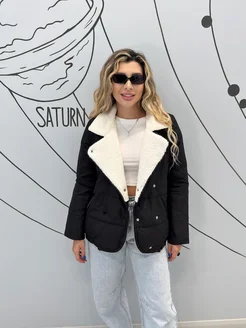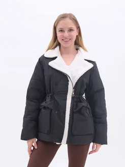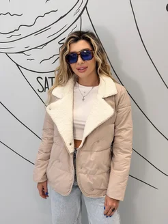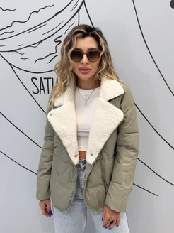 Куртка демисезонная короткая стеганая с мехом осень