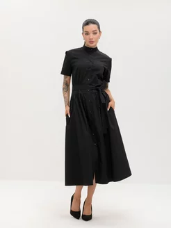 длинное повседневное платье рубашка с воротником