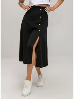 юбка миди на пуговицах спереди с высокой посадкой