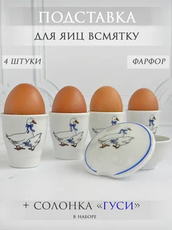 Подставка для яиц всмятку фарфоровая набор 4 шт с солонкой