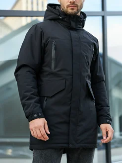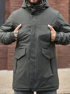 Куртка пуховик зимняя утепленная удлиненная с капюшоном