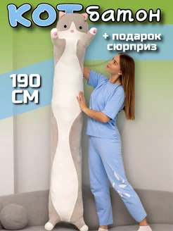Мягкая игрушка кот батон 190 см подушка длинный
