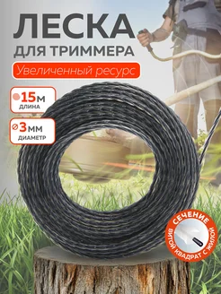 Леска для садового триммера витой квадрат с жилой 3 мм х 15м