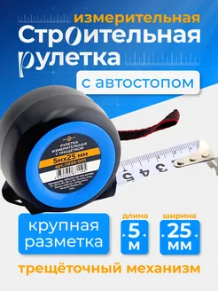 Рулетка измерительная строительная с автостопом 5м х 25мм
