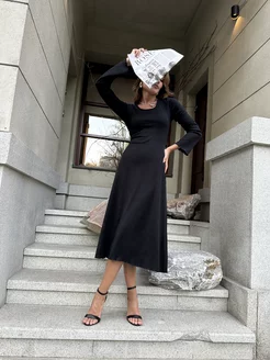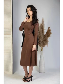 Платье лапша миди офисное облегающее трикотажное с завязками