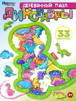 "Динозавры" - Фигурный деревянный пазл в рамке для малышей