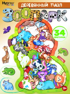 "Зоопарк" - Деревянный пазл в рамке животные