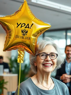 Воздушный шар с надписью "Ура! Пенсия!", 45 см