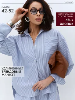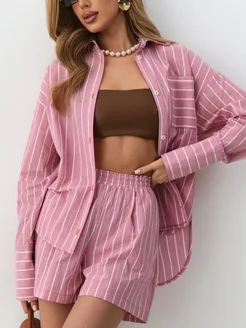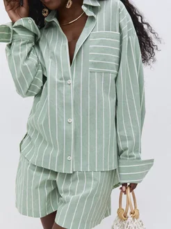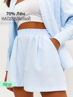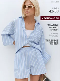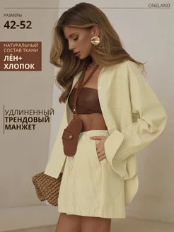 Льняной костюм с шортами и рубашкой с удлиненными манжетами