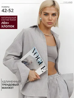 Костюм льняной с шортами и рубашкой с длинным рукавом