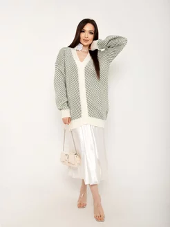 Кардиган вязаный оверсайз на пуговицах удлиненный