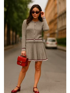 Костюм теплый с юбкой трикотажный вечерний в стиле Old money