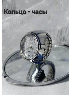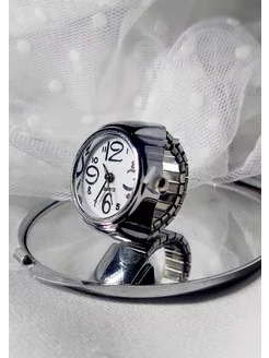 Кольцо - часы блестящие на палец белые