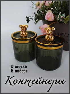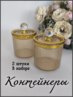 Баночки для ватных дисков в ванную Кристалл золотистый 2 шт