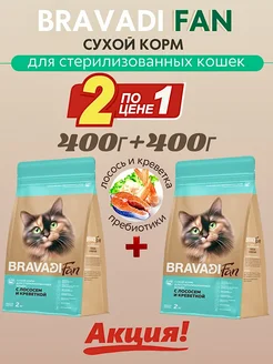 Корм сухой для стерилизованных лосось, креветки 400г 2шт
