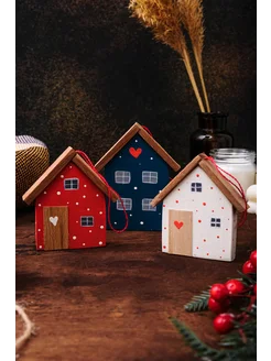 Ёлочные игрушки – домики из дерева