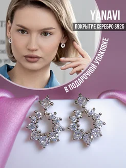 Серьги круглые гвоздики со стразами пусеты