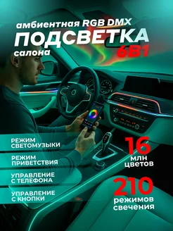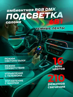 Атмосферная подсветка салона авто RGB DMX 6в1 темные ленты