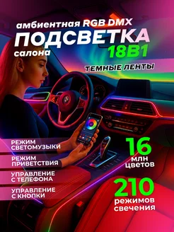 Амбиентная подсветка в салон авто RGB DMX 18в1 темные ленты