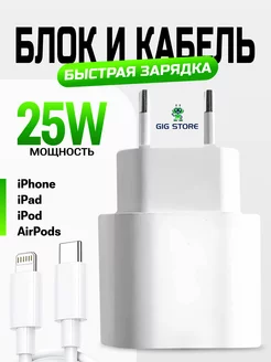 Зарядка для iPhone быстрая 25W Type-C Lightning Блок+Кабель