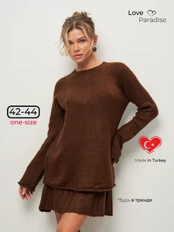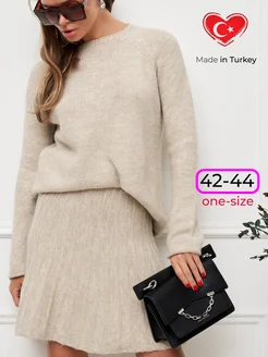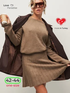 Вязаный костюм женский двойка с юбкой плиссе теплый