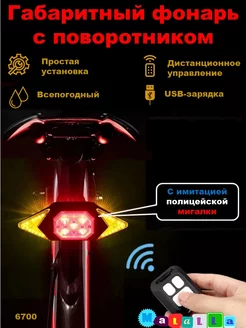Габаритный вело фонарь с поворотными огнями и пульт на руль