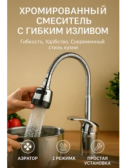 Кухонный смеситель с гибким изливом и аэратором