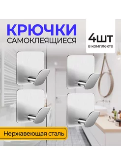 Крючки самоклеящиеся металлические 4 шт, нержавеющая сталь