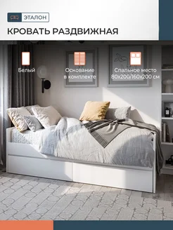 Кровать односпальная раздвижная с ящиками 80Х200 белая