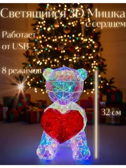 Светящийся 3D Мишка с сердцем