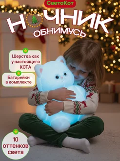 Мягкая игрушка ночник кот плюшевый Пухляш