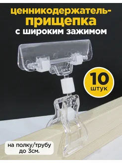 Ценникодержатель-прищепка, широкий зажим, прозрачный, 10 шт