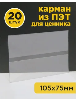 Карман для ценников, 105х75 мм, прозрачный, 20 шт