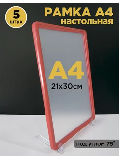 Рамка А4 на держателе-прищепке, красная, с карманом, 5 шт