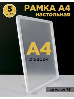 Рамка А4 на держателе-прищепке, белая, с карманом, 5 шт