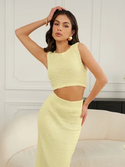 Костюм летний вязаный пляжный двойка с юбкой макси