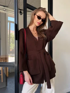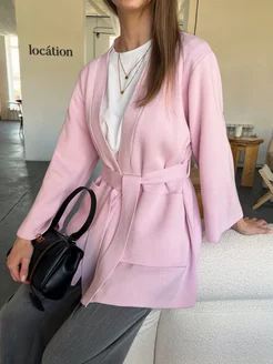 Кардиган вязаный удлиненный оверсайз с поясом кимоно