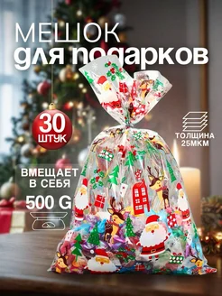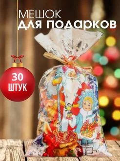 Новогодние подарочные пакеты без ручки для сладостей 30шт