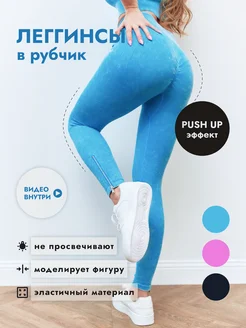 Леггинсы спортивные лосины для фитнеса пушап в рубчик