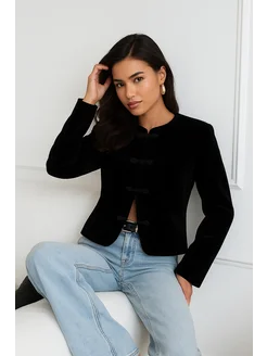 Жакет пиджак укороченный бархатный офисный праздничный