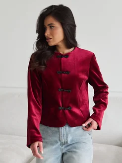 Пиджак жакет укороченный бархатный бордовый