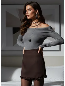 Юбка коричневая шорты трапеция мини с рюшами шоколадного