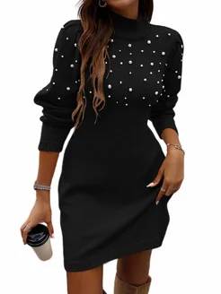 Платье-свитер с длинными рукавами, расшитое бисером