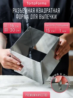 Раздвижная квадратная форма для выпечки D16-30 Н 15 (1мм)