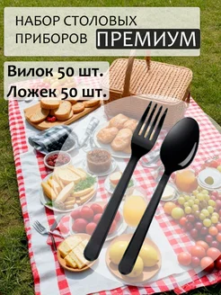 Вилки и ложки одноразовые пластиковые приборы 100 штук