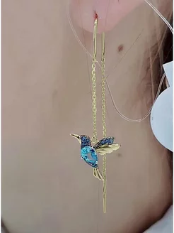 Серьги птички Колибри бижутерия на золотистой цепочке