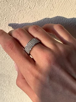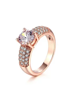 Кольцо женское со стразами и камнями золотистое бижутерия