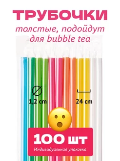 Трубочки широкие для бабл ти 50 шт цветные 12 мм